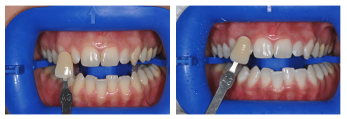 La patient s’est présenté à la première visite avec une prothèse totale amovible supérieure et une prothèse totale implantaire inférieure avec des dents temporaires en résine.